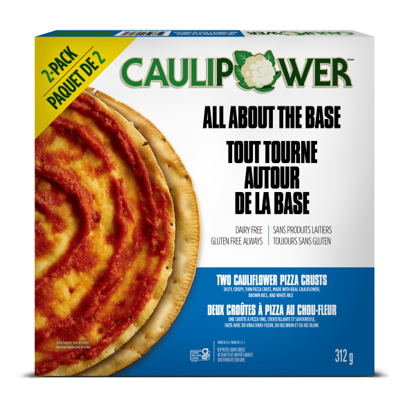 Notre croûte de pizza nature «Juste la croûte» est une toile qui n’attend que votre inspiration culinaire. Créez votre propre chef-d’œuvre en vous mettant aux commandes - choisissez quelles garnitures, quel type de fromage et quelles quantités vous avez envie d’y mettre. Quoi que vous décidiez, vous ne pouvez pas vous tromper avec cette croûte qui est toujours faite avec du chou-fleur comme premier ingrédient donc naturellement sans gluten!